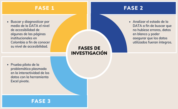Mediante esta investigación se pretende diseñar una propuesta de un Big Data para la aplicación de la NTC-5854 en las páginas institucionales en Colombia, a fin de conocer el nivel de accesibilidad en el que se encuentra cada una de las entidades previamente evaluadas, la estructura que manejan y los cambios que han presentado en sus niveles de accesibilidad desde el año 2019 a la fecha.