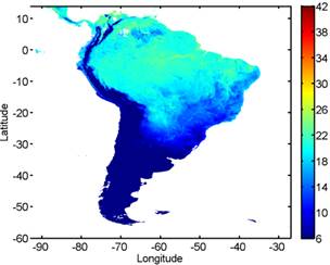 Muchos autores señalan que lo más importante en el El continente de América del sur se extiende aproximadamente entre 9 N a 60 S y 90 W a 30 W. A pesar del hecho que las áreas urbanas están localizadas en América del Sur, las diferencias en la localización geográfica, variación en la elevación, característica del alrededor de las regiones rurales y distribución de áreas urbanas, genera importantes diferencias entre la Islas de Calor Urbano (SUHI) en la ciudad por ello es de suma importancia la estimación de la TS.