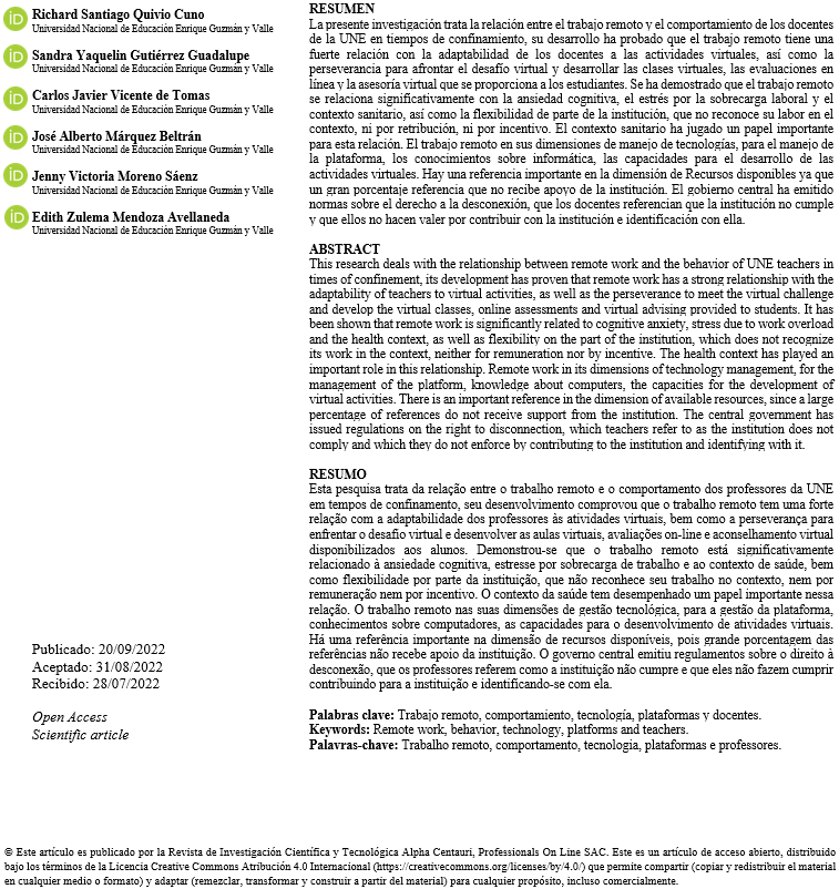 Remote Work and its relationship with the Behaviors of UNE Teachers in Times of Confinement