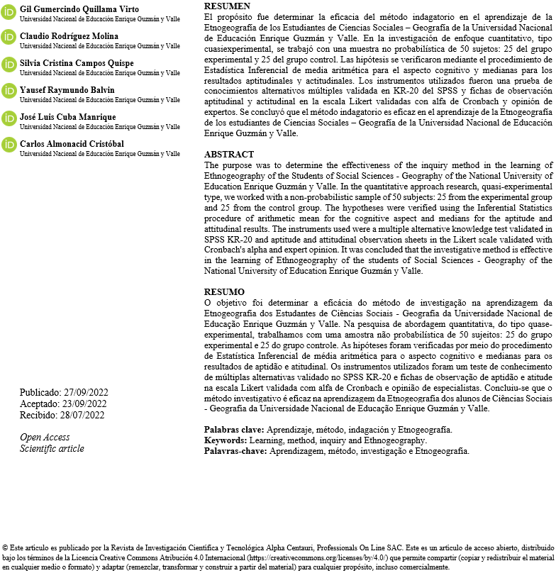 Inquiry Method and Learning of Ethnogeography, Students of Social Sciences – Geography of the UNE EGyV