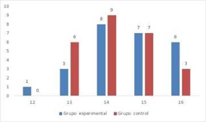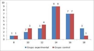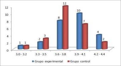 La comparación de los resultados en las pruebas de conocimientos, tanto de los grupos experimental como la de control, muestra escasa diferencia (figura 1), debiéndose realizar la prueba de comparación de medias para determinar estadísticamente la significación de la diferencia.