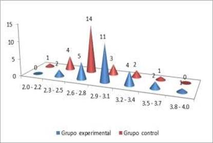 La figura 2 permite apreciar que, en relación a las habilidades en la preprueba, los grupos experimental y de control muestran muy pocas diferencias y no alcanzan significancia estadística cuando se realizó la prueba de Z correspondiente.
