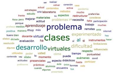 Se puede observar en la figura 1 que la palabra con mayor empleo en las entrevistas realizadas es: problema, clases, desarrollo, virtuales, aprendizaje que ordenándolas podemos decir que se evidencia un problema o dificultad en el desarrollo de las clases virtuales y se ve reflejado en las respuestas de los entrevistados.