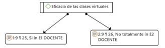 A partir del análisis cualitativo con ATLAS. Ti, se construyeron categorías y subcategorías, que indicaron que los docentes y estudiantes enfrentaron retos en las clases sincrónicas y asíncronas creando diversas propuestas educativas y aprendizajes inesperados. Los análisis muestran en los resultados, según en las especialidades de biología, física y química, relevancia, para discutir futuros entornos multimodales de educación en las categorías siguientes: gestión virtual del docente y aprendizaje significativo de los estudiantes de Ciencias Naturales. Asimismo, la interpretación hermenéutica respectiva, también la red hermenéutica de las subcategorías, características del trabajo virtual en el dictado de clases se agregó las subcategorías de eficacia de las clases virtuales, de las dificultades en el contexto digital, las subcategorías problemas en el proceso de aprendizaje, de las dificultades en el desarrollo de las clases virtuales, asimismo la red hermenéutica con respecto a la subcategoría actitud el estudiante y actitud del docente y finalmente la red hermenéutica con respecto a la subcategoría preferencia de las clases presenciales. A continuación, se presenta la tabla de resultados relacionados a los objetivos y figuras que detallan y describen las categorías y subcategorías mencionadas, producto de la aplicación de la técnica de la entrevista de datos cualitativos: