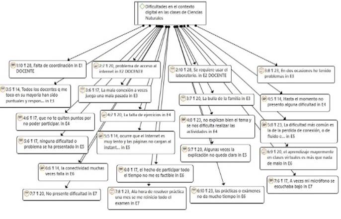 Red hermenéutica con respecto a la subcategoría dificultades en el contexto digital