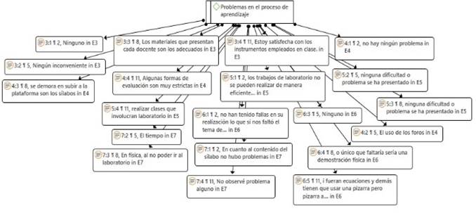 Red hermenéutica con respecto a la subcategoría problemas en el proceso de aprendizaje