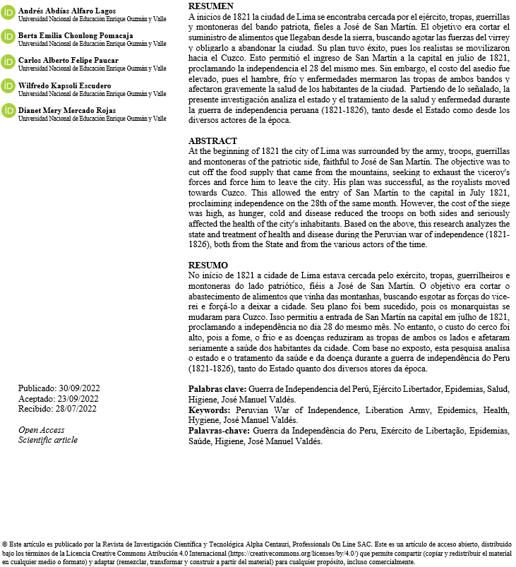 [36] Pamo Reyna, O. (2009). Los médicos próceres de la independencia del Perú. Acta Médica Peruana, 26(1), 58-66.