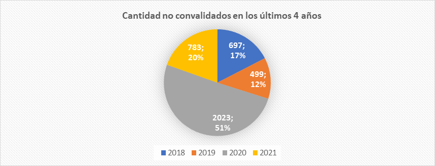 Cantidad de títulos no convalidados en los últimos 4 años